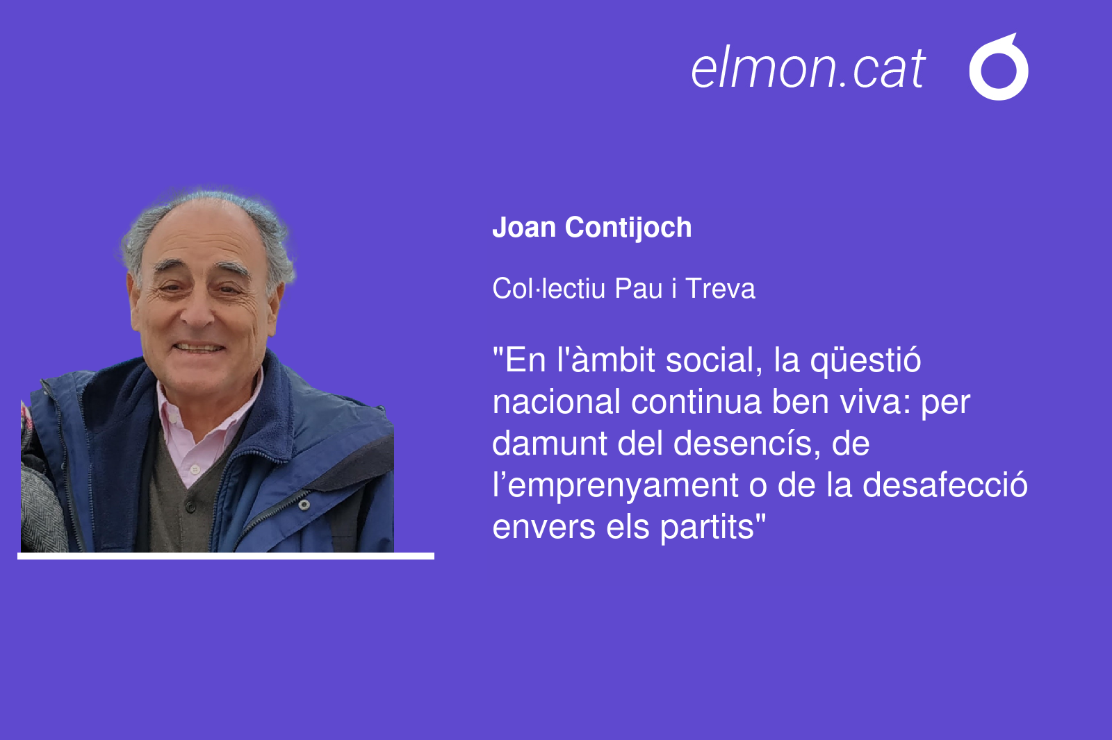 Pel que fa a l’eix nacional, és cert que ja no ocupa la centralitat política i electoral de fa uns anys. Les ideologies, els sectarismes i els interessos de partit, amb la consegüent pèrdua de visió nacional, han erosionat la seva força institucional. Ara bé, parlar de “mort de l’eix nacional” és enganyós. En l’àmbit social, la qüestió nacional continua ben viva: per damunt del desencís, de l’emprenyament o de la desafecció envers els partits, persisteix en l’ànim dels independentistes i es combina amb altres demandes —justícia social, feminisme, ecologisme o qualitat democràtica— que responen a la mateixa vitalitat popular.