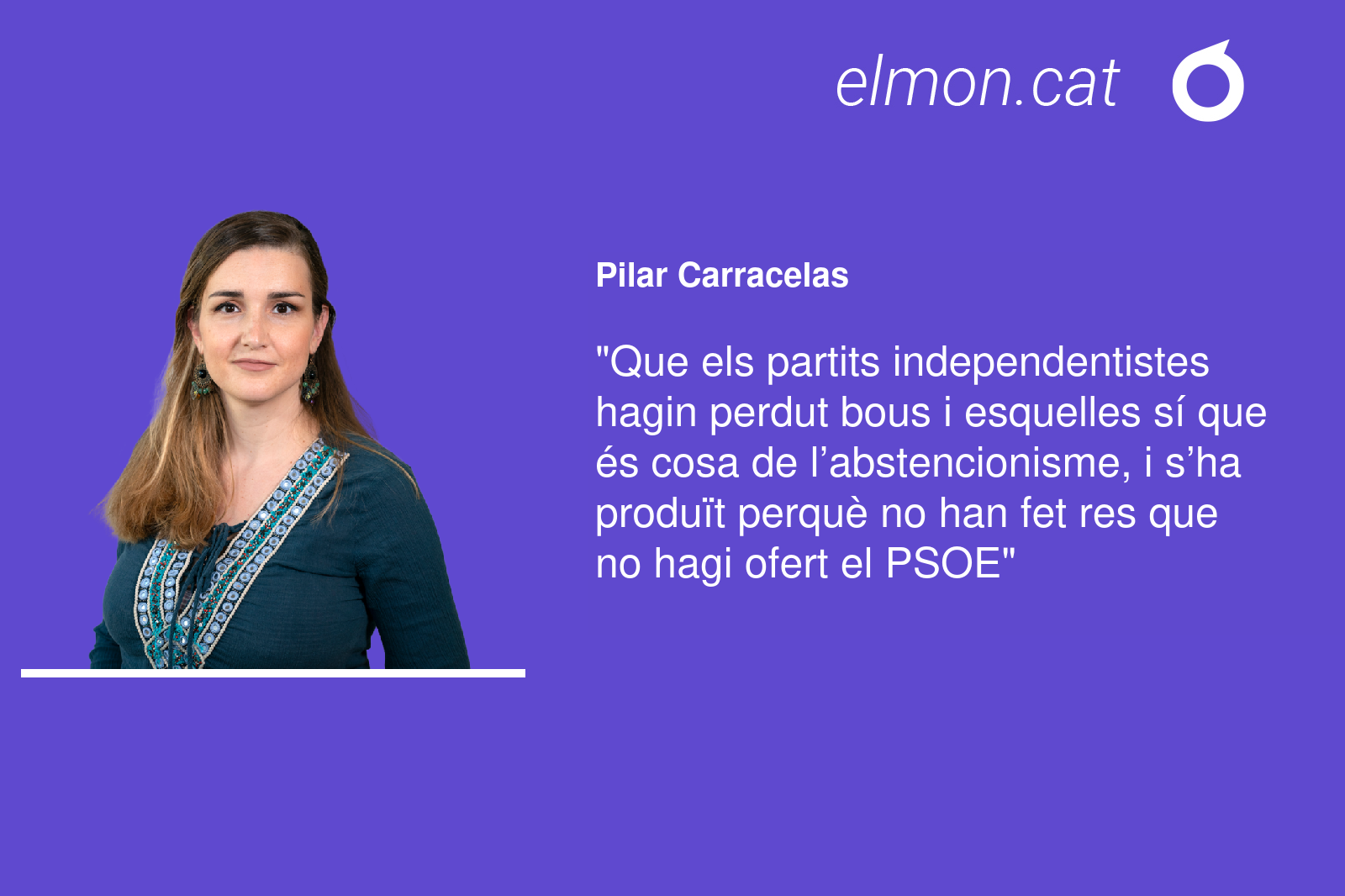 Que els partits independentistes hagin perdut bous i esquelles (de 23 a 14 escons, reduint així gairebé a la meitat -perquè la CUP queda sense representació- els recursos per a les seves xarxes clientelars) sí que és cosa de l’abstencionisme, perquè s’ha concentrat especialment a Catalunya, i l’abstenció s’ha produït perquè no han fet res que no hagi ofert el PSOE. És tan fàcil com això. Per això si Pedro Sánchez presenta candidatura a Esquerra l’hauran d’investir gratis perquè total, ja tot fa baixada i convocar eleccions al Parlament, potser a la tardor i tot. Però potser tenen sort i hi ha un pacte PP-PSOE. I de fet, la pèrdua de vots també a Junts podria provocar que s’hagi de mullar (si no escenifica un teatre com el de la Diputació de Barcelona, amb actors que facin de díscols), cosa que pot fer que la seva patacada, a diferència de la dels republicans, sigui en diferit.