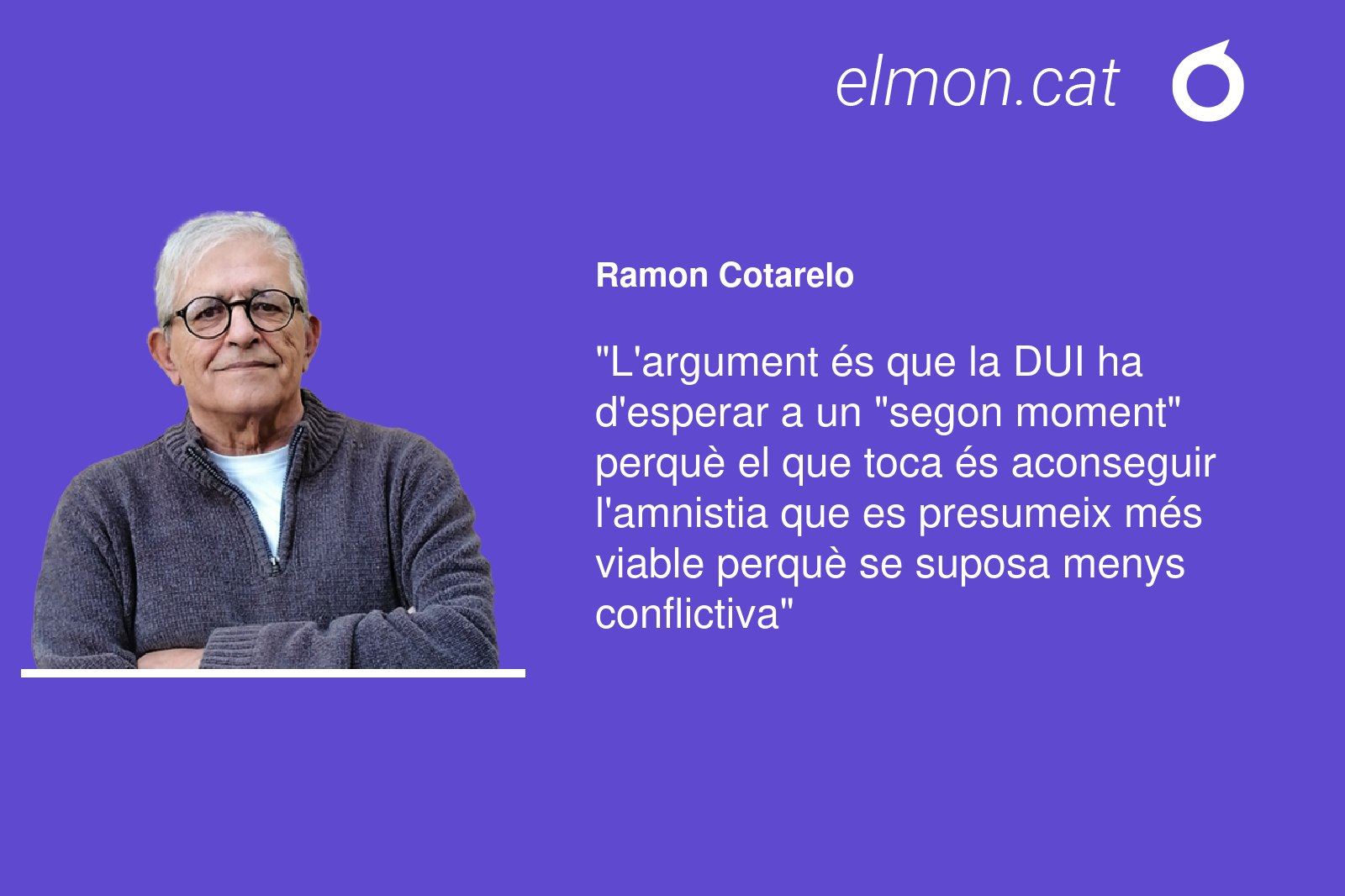 La presidenta de l’ANC, Dolors Feliu, va demanar la DUI amb determinació i, amb una mica menys de decisió, va deixar entreveure que la idea d’una llista cívica continua viva. El president Aragonès, condescendint, com a home d’estat, va contestar que no té cap sentit proclamar la DUI si no hi ha un reconeixement internacional, obviant el fet que, perquè hi hagi reconeixement internacional, abans cal proclamar una DUI. L’argument és que la DUI ha d’esperar a un “segon moment” perquè el que toca aleshores és aconseguir l’amnistia que es presumeix més viable perquè se suposa menys conflictiva que la DUI.