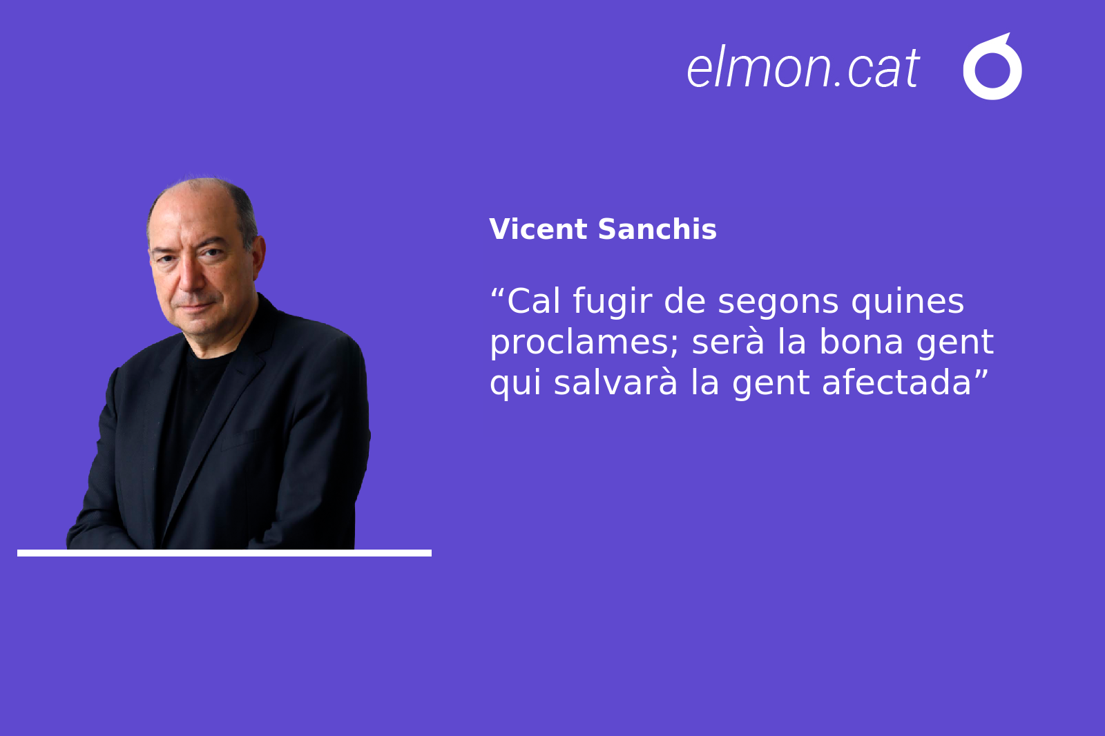 Les divises, els lemes, han de ser fàcils, resolutius, assumibles. Com algunes cançons i les roses del paper. Però cal fugir de segons quines proclames, de segons quines simplificacions. Serà la bona gent qui salvarà la gent afectada. Encara que alguns critiquen el terme “bona” per tot el que pot representar, de bíblic o de xirucaire. Però, de gent, n’hi ha de tot pèl. La bona exigeix un qualificatiu aclaridor. Pel que fa al “poble”, que vigile el poble. Hi ha un altre “poble” que, si torna a votar, ho farà per unes opcions més bèsties encara que les que l’han sumit en el dolor evitable.