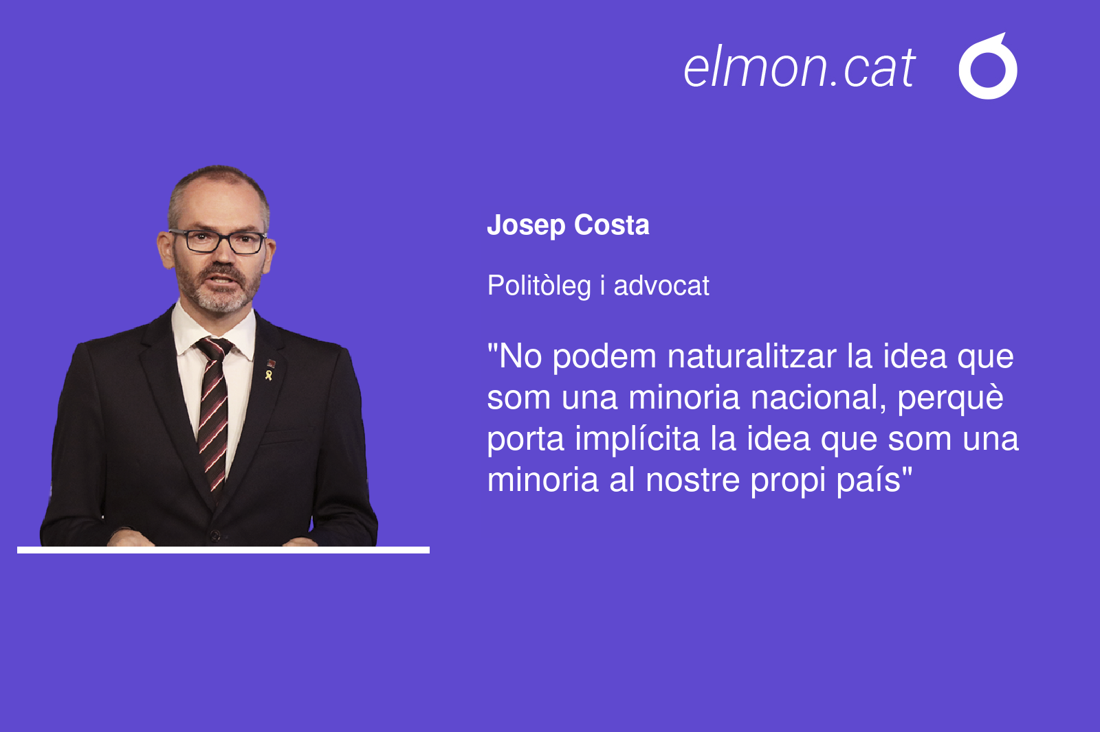 Els catalans som Catalunya, som el poble català. Som un poble que ha exercit la seua autodeterminació i que té dret a exercir la sobirania sobre el seu territori nacional, sobre tota la població que hi viu. No podem naturalitzar la idea que som una minoria nacional, perquè porta implícita la idea que som una minoria al nostre propi país, que és el primer pas per negar-nos la sobirania sobre el mateix territori. Aquest és justament el projecte d’Espanya.