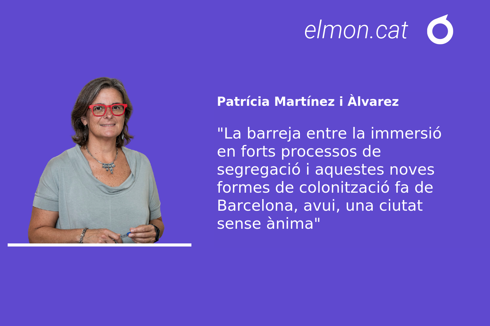 La cosa és que la barreja entre la immersió en forts processos de segregació i aquestes noves formes de colonització fa de Barcelona, avui, una ciutat sense ànima, poc humana i difícil de seguir estimant. Sí, perquè si algun dia, a aquesta ciutat algú se la mirava de lluny per allò que era i tenia, avui, sens dubte, qui més qui menys se la mira pel que pot fer amb ella, en ella, sense pensar qui era i com era ella. Aquella, la Barcelona que un dia algú va decidir que “calia posar guapa”.
