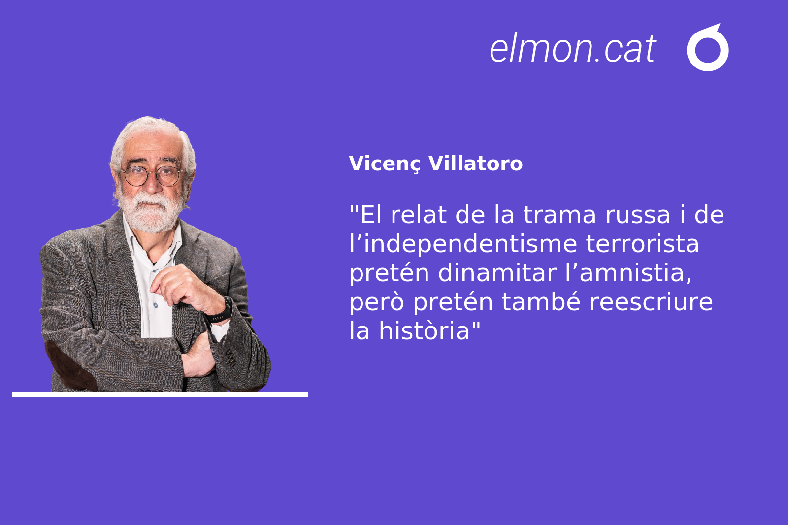I si a aquest relat de la trama russa li afegim el del terrorisme, estem reescrivint encara més la història. Es tracta de deixar establert que l’independentisme català va ser un moviment violent, equiparable al del terrorisme gihadista o a qualsevol altre terrorisme actiu dels que deixen morts i ferits. I que no ens hem de deixar enganyar pel fet, insubstancial, que aquí no hi hagués morts ni ferits ni destrucció, que l’única violència visible fos la que es va utilitzar des de l’Estat contra persones que estaven votant, perquè sota aquesta aparença el moviment tenia una vocació terrorista i violenta, encara que els efectes en siguin absolutament invisibles. Per tant, es tracta que quedi dit que allò que va ser una expressió democràtica i espontània de la voluntat d’un gran nombre de ciutadans era en realitat una construcció dels serveis secrets russos com a part d’una conspiració política dissenyada des de Moscou i inoculada a Catalunya com s’injecta un virus verinós. I que allò que va ser una manifestació democràtica i pacífica a favor del dret a decidir el propi futur era de fet una explosió de violència (encara que fos només en potència) a la qual es pot aplicar l’adjectiu de terrorista.