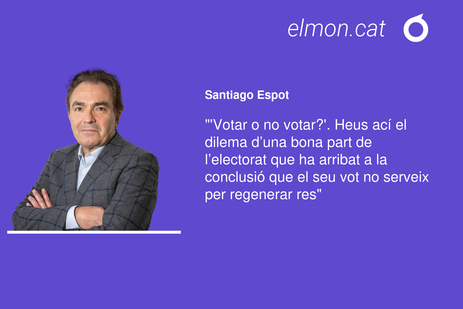 Només els espanyols es poden permetre el luxe de no anar a votar..Els Catalans hem d’anar a votar encara que sigui amb la pinça al nas..Els espanyols perdent les eleccions a Catalunya tenen constitucional, suprem i resta de poders de l’estat per guanyar el que hagin perdut a les urnes. Nosaltres hem de salvar les engrunes de l’statu quo anant a votar..De moment no podem fer res més.