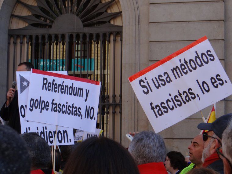 Pancartes a la manifestació unionista en defensa de la Constitució