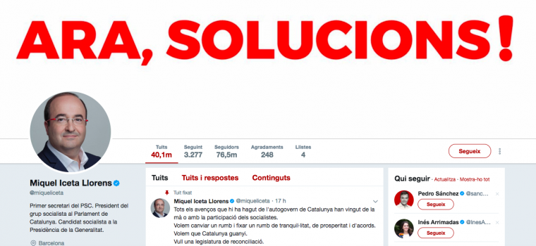 Perfil de Twitter del candidat del PSC, Miquel Iceta