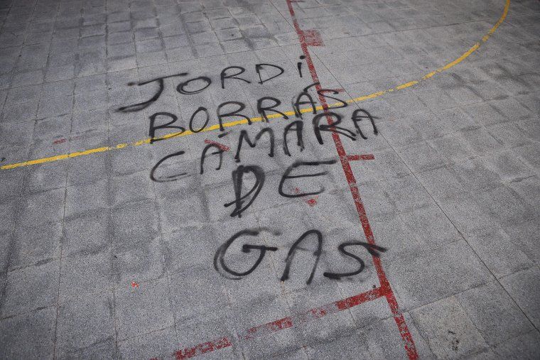 Pintada amenaçant el fotoperiodista Jordi Borràs al pati de l'escola Ramon Llull