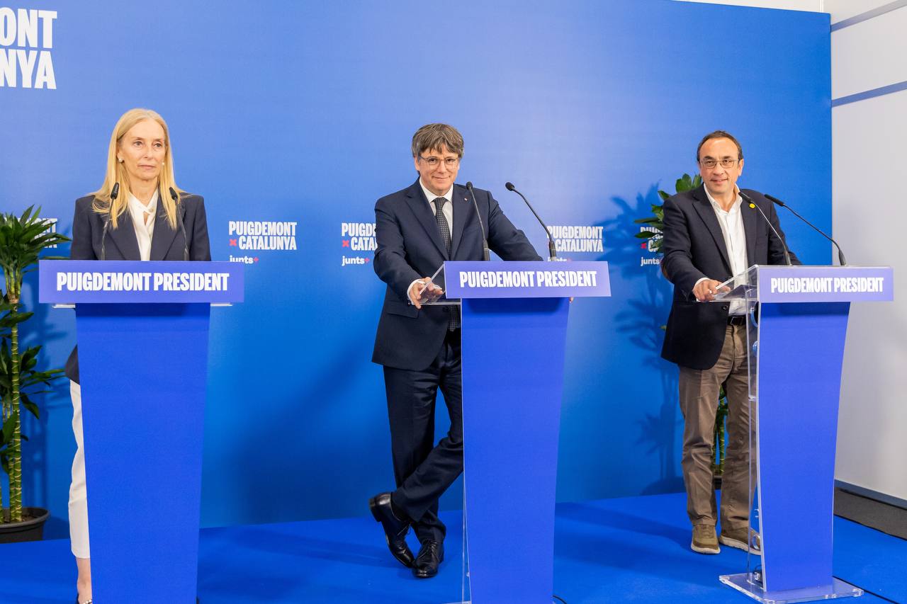 El president a l’exili i candidat de Junts+ a la presidència de la Generalitat, Carles Puigdemont, ha supeditat un futur acord de coalició després de les eleccions al Parlament del pròxim 12 de maig a fer un front comú a Madrid i, en una roda de premsa acompanyat per Anna Navarro i Josep Rull, ha desgranat el programa econòmic per a la pròxima legislatura, que inclou dues macroconselleries de l’àrea economia per fer un “canvi de model” i “donar un nou impuls” a l’economia catalana. Segons ha detallat Puigdemont, la gran cartera s’encarregarà d’Economia Hisenda, Fiscalitat i Infraestructures; i la segona inclourà Empresa, Recerca, Treball i Universitats.