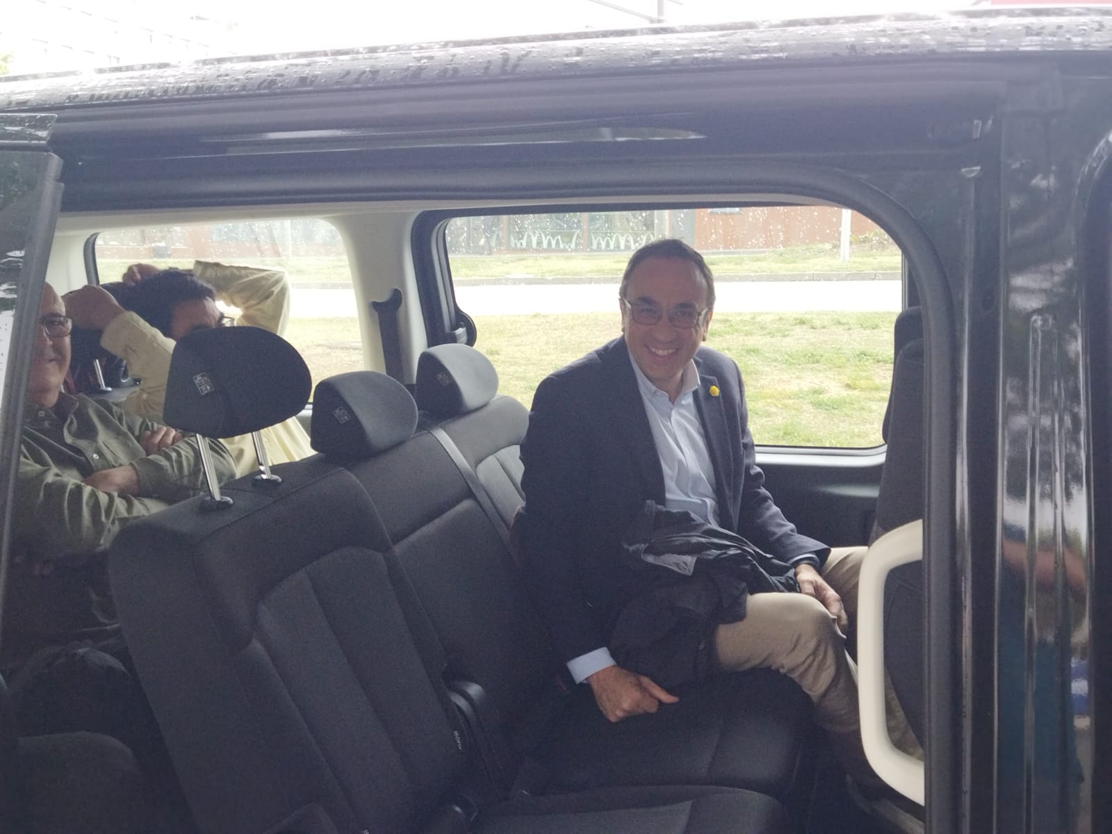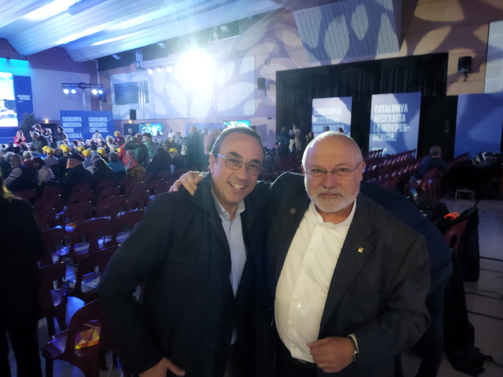 A l’àrea de l’Empordà fem una parada tècnica. Juntament amb El Món viatja també el president de Junts de Terrassa, Julio Díaz. Plou bastant. El cafè entra amb ganes. Hi ha assistents al míting que viatgen a Argelers que viatgen amb alguns dels autocars i Rull no para de saludar uns i altres. Es petoneja i abraça amb gent de Terrassa, Sant Cugat o Sabadell. Més que un polític, el que va ser conseller de Territori entre el gener del 2016 i l’octubre del 2017, sembla una estrella de cinema.