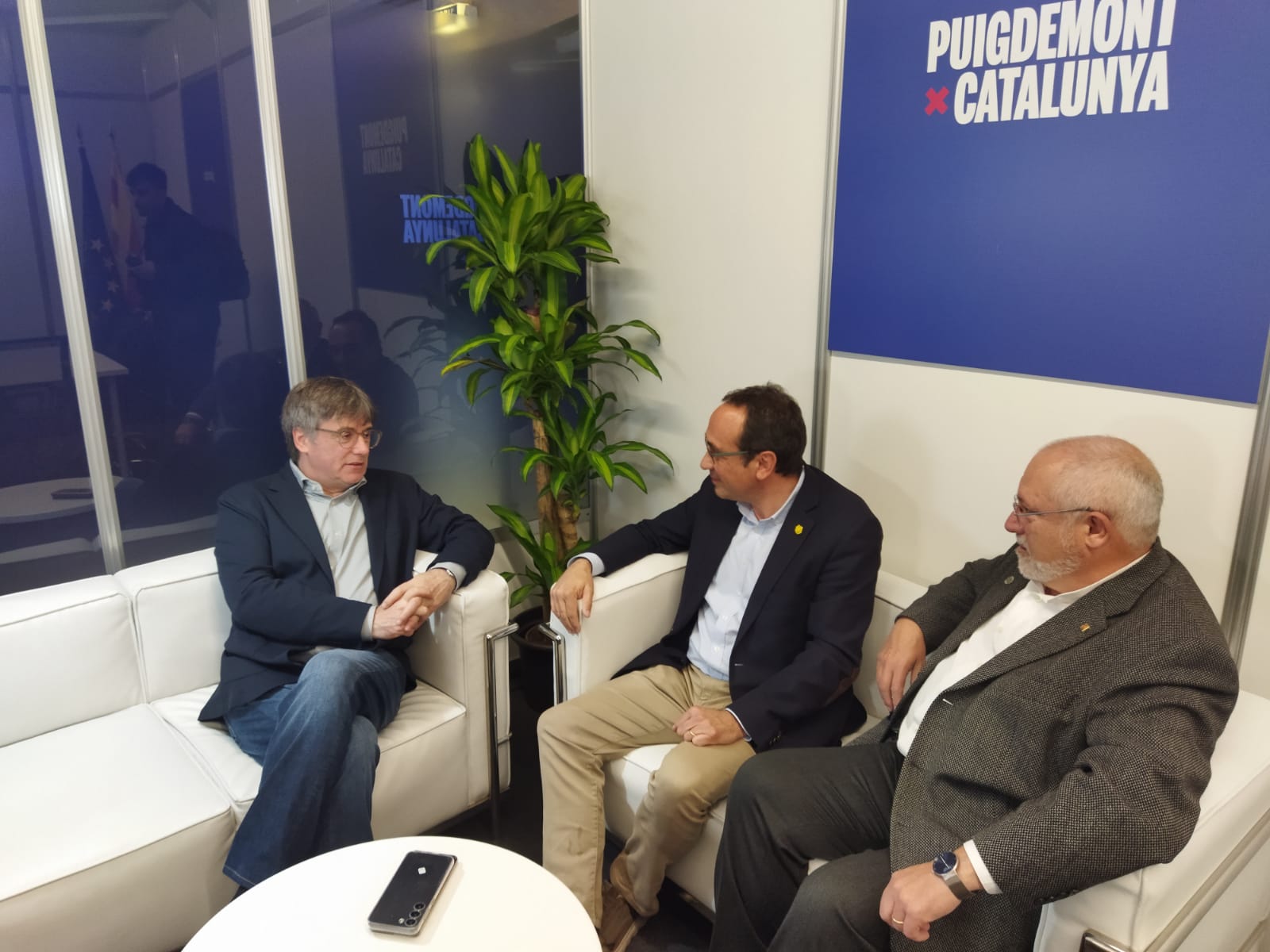 Poc abans de començar l’acte a Argelers, en un pavelló ple de gom a gom, on no es para de cridar “com el Vallès no hi ha res”, arriba Puigdemont. El president es reuneix amb els dos consellers en una petita sala amb uns sofàs blancs. El president reafirma la seva intenció de tornar a Catalunya “per al ple d’investidura“.