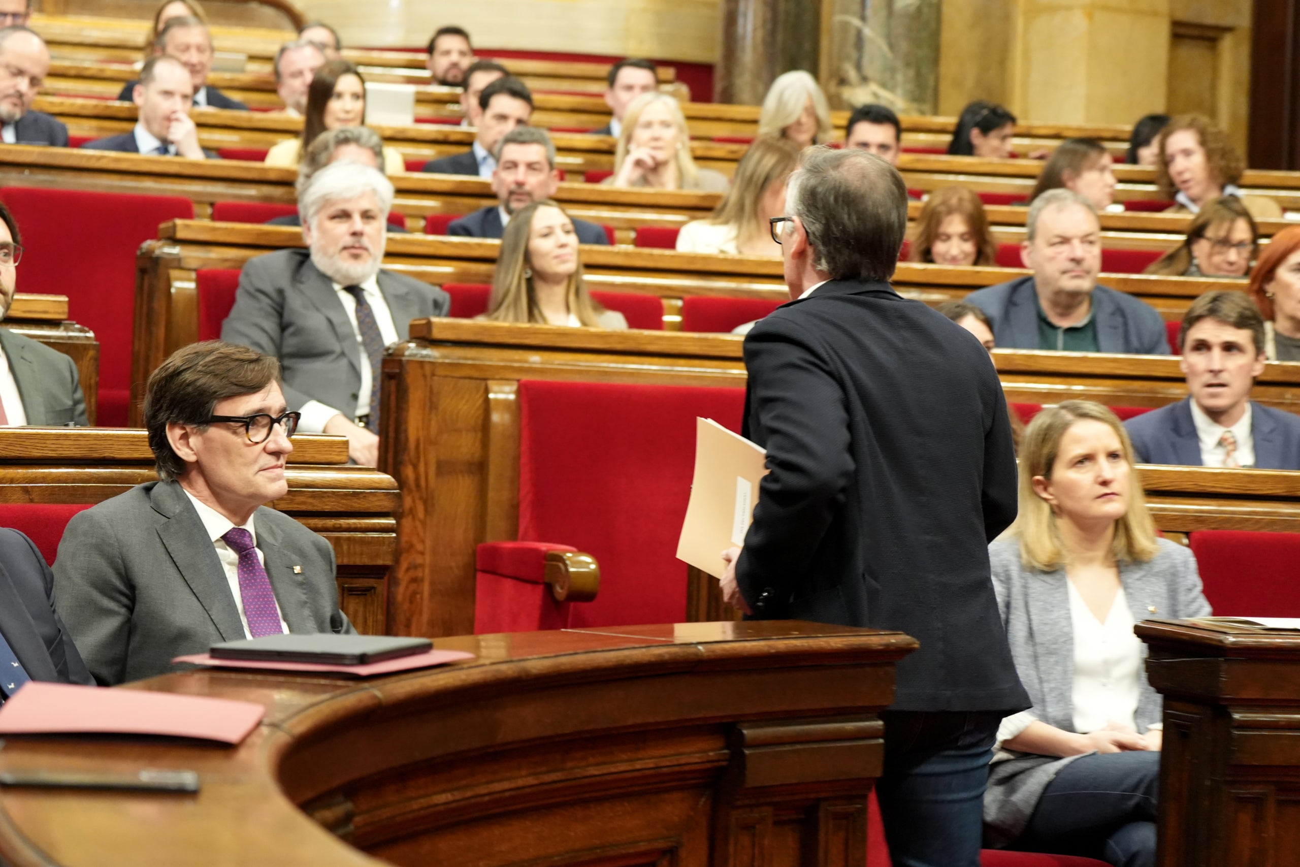 Jové hi ha tornat durant la compareixença d’Illa que s’ha fet a la tarda, que ja estava prevista, a petició de Junts, per “la situació de col·lapse que pateix Catalunya”. Aquí el to ja no ha estat tan conciliador i ha reclamat a Illa tenir la “garantia” que el PSC complirà i no trairà el pactat amb els republicans. En aquest sentit, ha exigit que compleixi el que s’ha acordat amb ERC en matèria d’IRPF per poder “acompanyar i fer possible la concreció d’aquests compromisos” en uns pressupostos. “Han de reconèixer que són 42 diputats, ni un més, i no tenen majoria”, li ha recordat, i li ha deixat clar que “amagar el cap sota l’ala i no reconèixer el conflicte de fons” entre Catalunya i Espanya genera “inestabilitat de fons”. A més, Jové ha replicat a l’al·lusió d’Illa sobre el suport dels comptes d’Aragonès del 2023 i el 2024, i li ha retret que ho faci servir com a argument per pressionar Esquerra. El líder republicà al Parlament ha marcat distàncies entre aquelles dues ocasions i la d’ara perquè, segons ha dit, “una cosa és condicionar una negociació per poder gestionar l’IRPF i una altra, ben diferent, és condicionar uns pressupostos a un casino, a una autopista o a una ampliació de l’aeroport”. “Ens hem donat més temps perquè es compleixi tot allò que vam pactar en la investidura”, ha sentenciat.