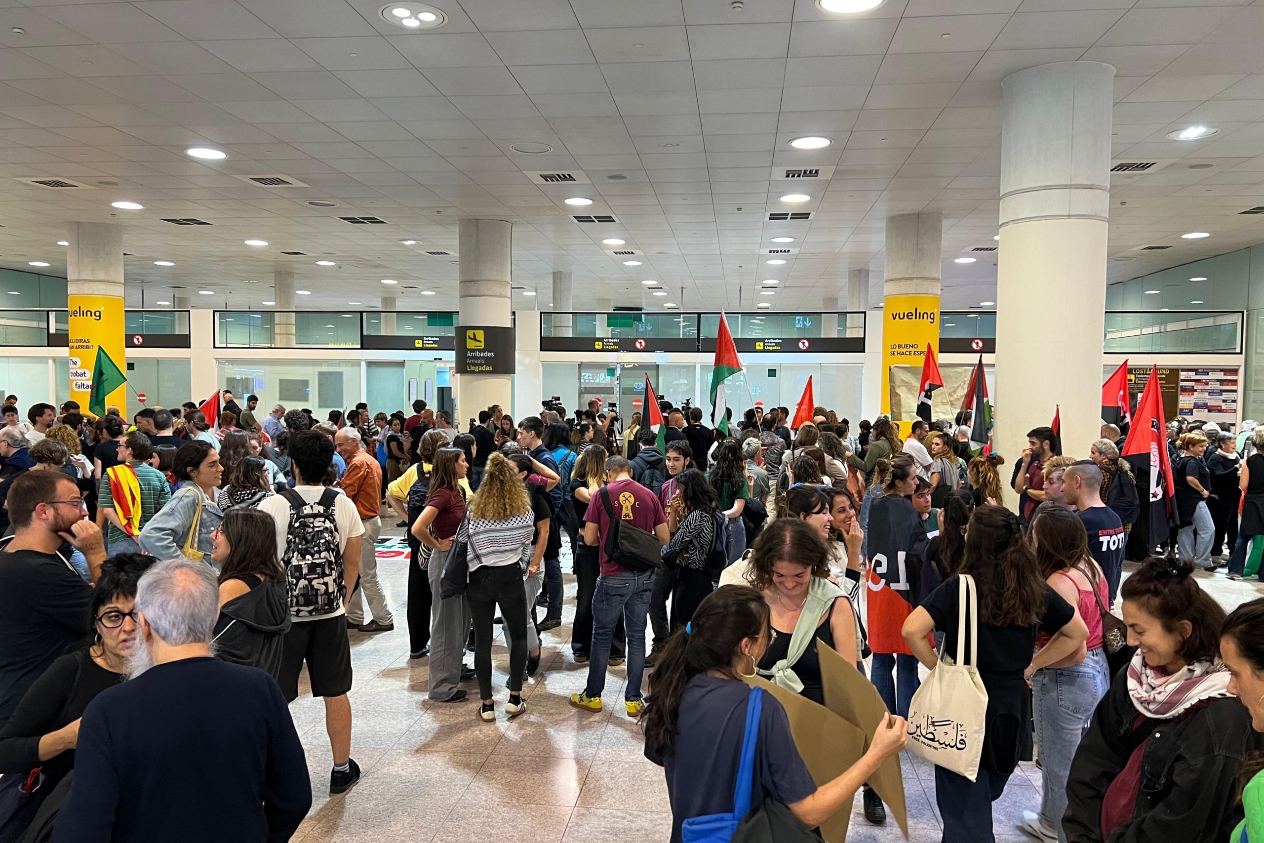 Els últims activistes catalans de la Global Sumud Flotilla han arribat a l’aeroport del Prat procedents d’Atenes poc abans de la mitjanit després d’haver estat expulsats d’Israel aquest dilluns. Els 12 activistes formaven part del segon grup de deportats després d’un acord entre Espanya i Israel. Unes 300 persones els esperaven a la zona d’arribades de l’aeroport per donar-los la benvinguda. Entre els activistes alliberats hi ha la diputada de la CUP Pilar Castillejo i el membre de la direcció de la formació Adrià Plazas, així com sindicalistes de la IAC, el sindicalista de CGT Saturnino Mercader o un membre del Sindicat de Barri del Poble Sec.