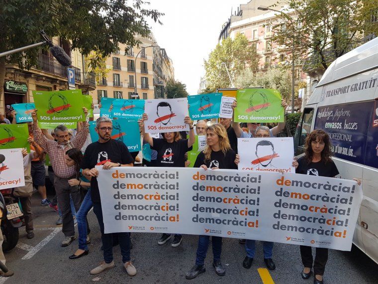 Tallen el carrer Diputació demanant l’alliberament de Sànchez i Cuixart