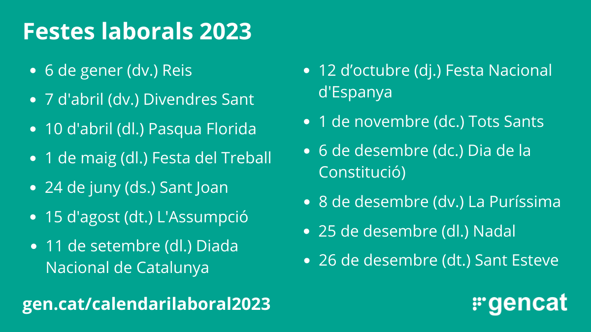 - Pont de Nadal: quatre dies entre el dissabte 23 i el dimarts 26 de desembre