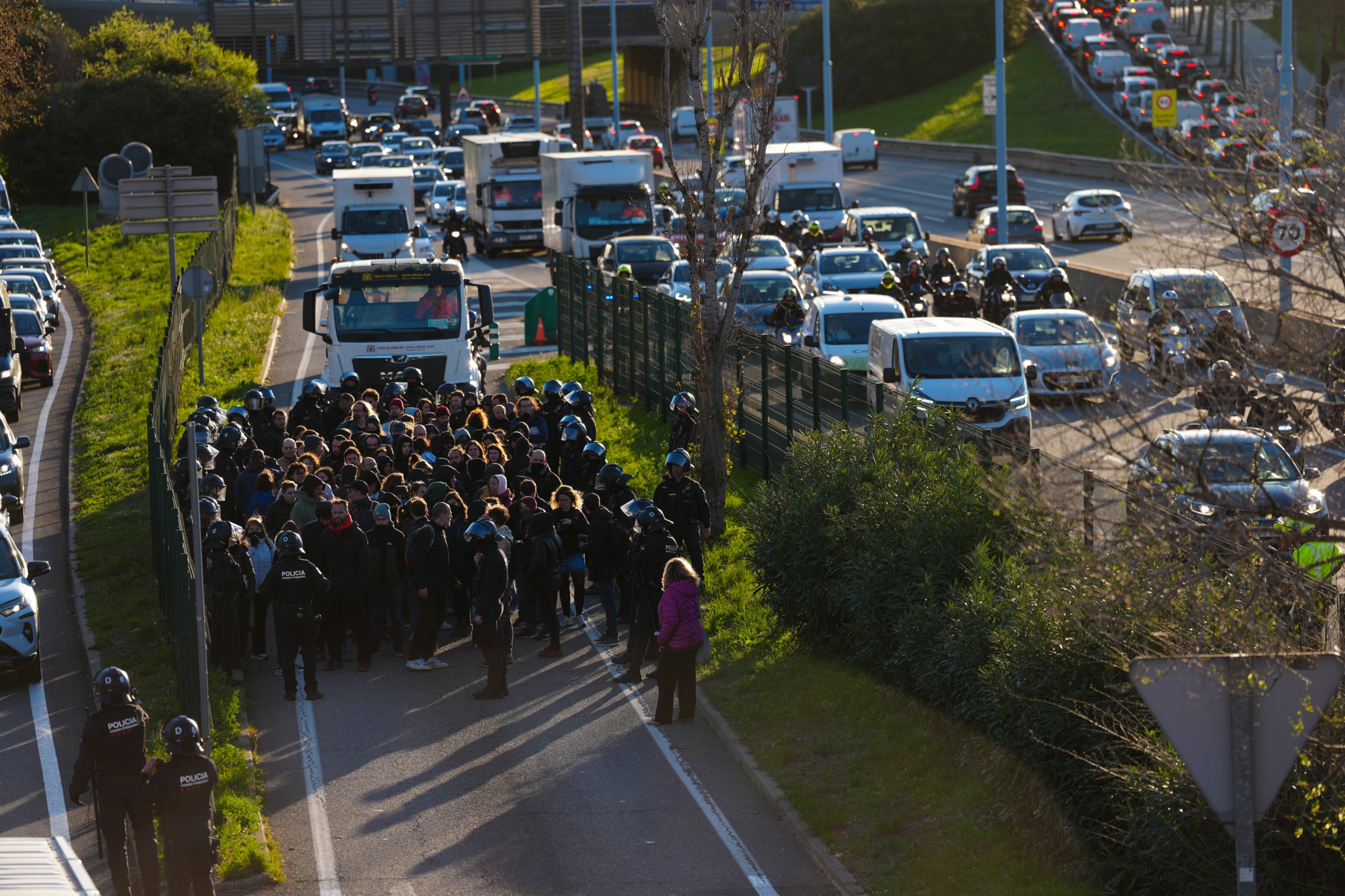 Els sindicats han tallat, tal com havien avisat, els principals accessos de Barcelona a primera hora del matí. La USTEC, que ha bloquejat trams de l’autovia A2 i de la Gran Via, entre altres, ha acusat els Mossos d’Esquadra d’“amenaçar” amb càrregues policials. El sindicat majoritari entre els mestres ha avisat que “escalaran el conflicte” si creix la tensió durant les protestes d’aquesta setmana. Aquesta ha estat la tònica del dia, sobretot a primera hora. La Intersindical, un altre dels sindicats que convoca les aturades, també ha tallat accessos i ha criticat les actuacions policials. Molts vehicles que sortien de Barcelona han apostat per buscar-hi alternatives, però els que entraven a la ciutat s’han vist atrapats per les cues