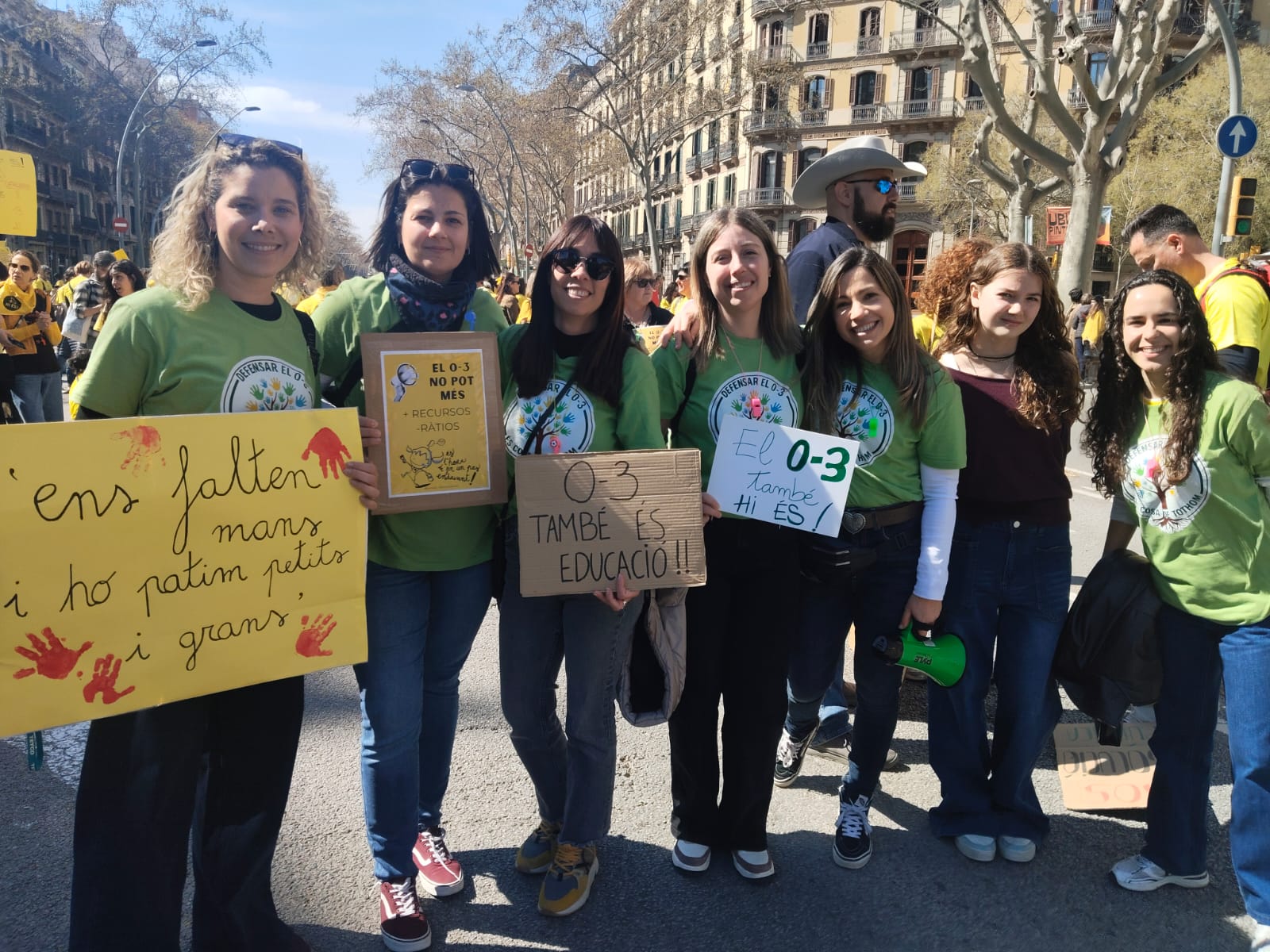 Les mestres de les escoles bressol, que completaven la vaga, també han fet soroll. “Ja som aquí, ja hem arribat, els 0-3 [anys] estem lluitant”, cantava, per exemple, un grupet arribat de Cornellà. “Estem fartes del concepte ‘guarderia’. Formem part d’una etapa vital molt important i estem oblidades: hi ha quatre models diferents d’escola bressol, no pot ser”, es queixa Sandra Quadra, conversant amb El Món. El col·lectiu demana que la gestió passi a formar part “íntegrament” d’Educació. A la seva lluita també s’han unit els tècnics d’educació especial i el personal administratiu dels centres. Tots ells reben el suport dels bombers, dels metges i dels pagesos, entre altres sectors clau del país que fan costat als docents.