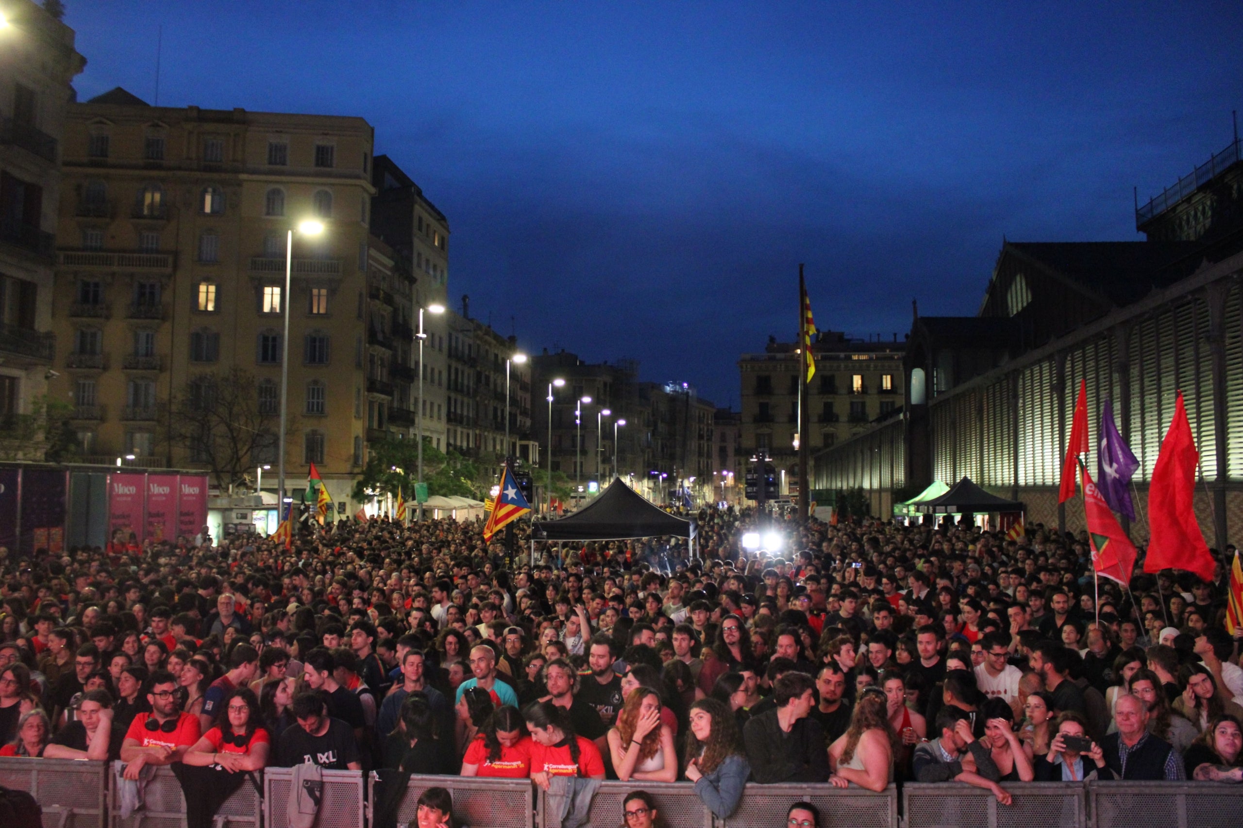 La ‘cursa’ ha avançat fins al Passeig del Born i a la plaça Comercial de Barcelona, l’espai escollit per llegir un manifest a favor de la “plena normalització del català”. L’acte, el primer massiu del Correllengua, va acabar amb la interpretació de la cançó del Correllengua i un concert del grup valencià Auxili.