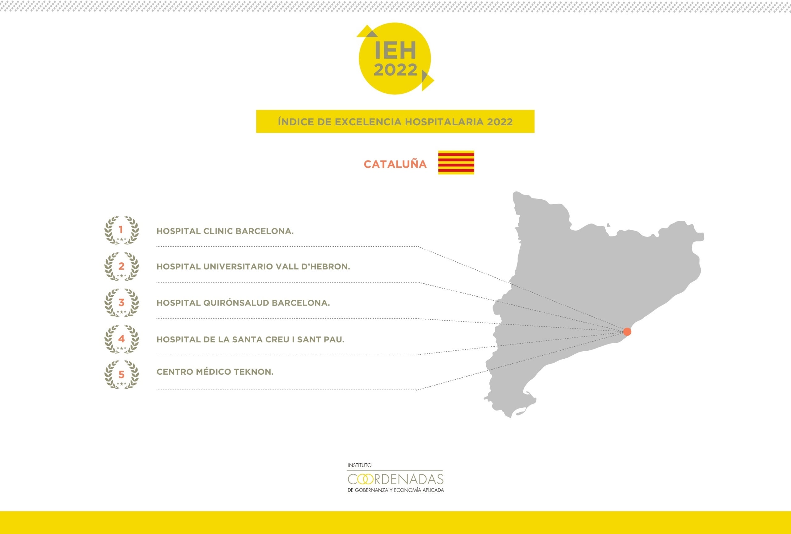 El sector sanitari català gaudeix d’un gran prestigi, tal com demostra la presència recurrent d’hospitals catalans en els principals rànquings de l’estat. Segons l’Instituto Coordenadas de Gobernanza y Economía Aplicada, el millor hospital de Catalunya és l’Hospital Clínic, que obté una valoració de 0,987 en l’Índex d’Excel·lència Hospitalària del 2022 i se situa també en la tercera posició de la classificació a escala estatal, només per darrere de l’Hospital Universitario Fundación Jiménez Díaz (0,996) i l’Hospital Universitario La Paz (0,993).