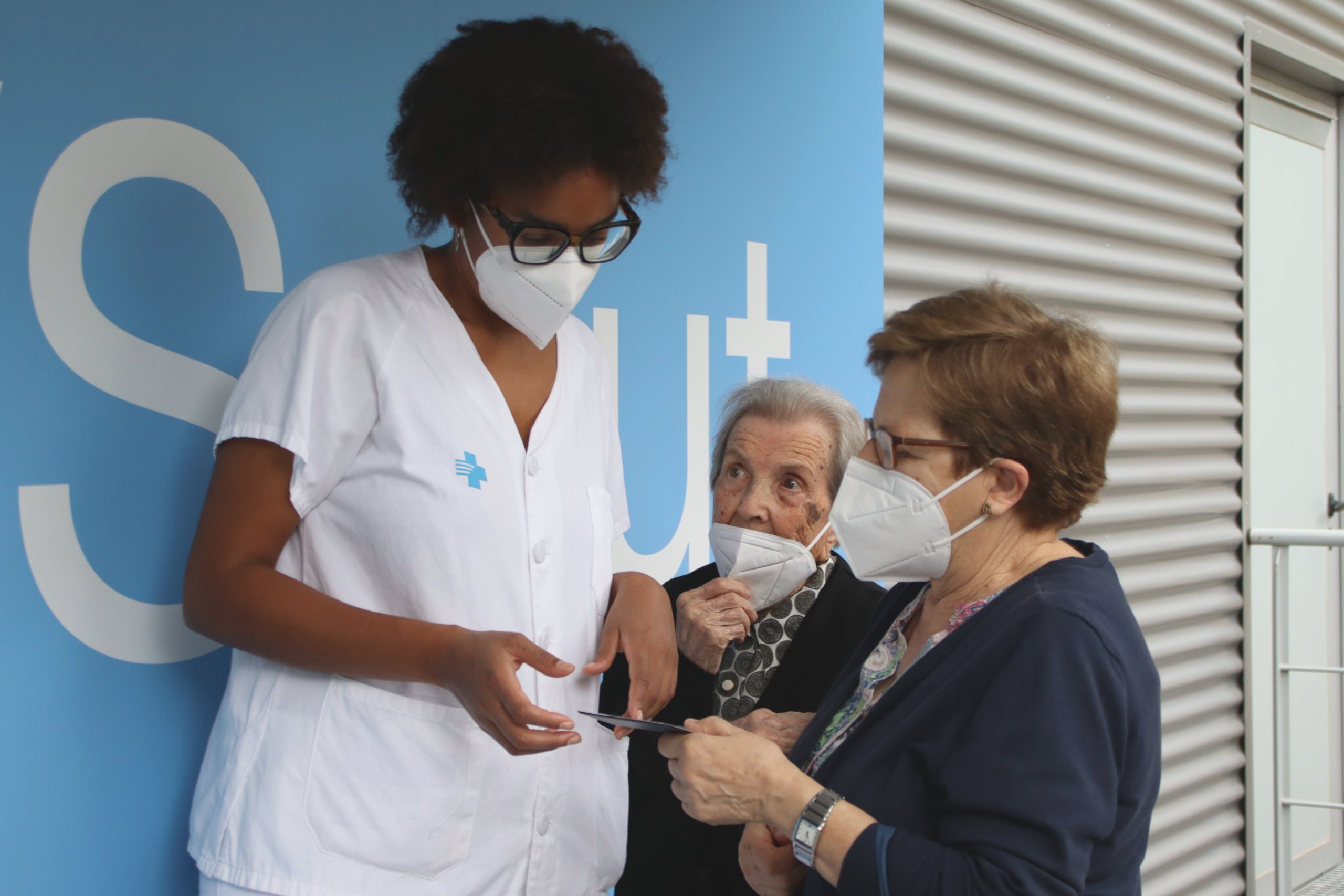 Una infermera d’atenció primària ajuda dues dones a un CAP / ACN
