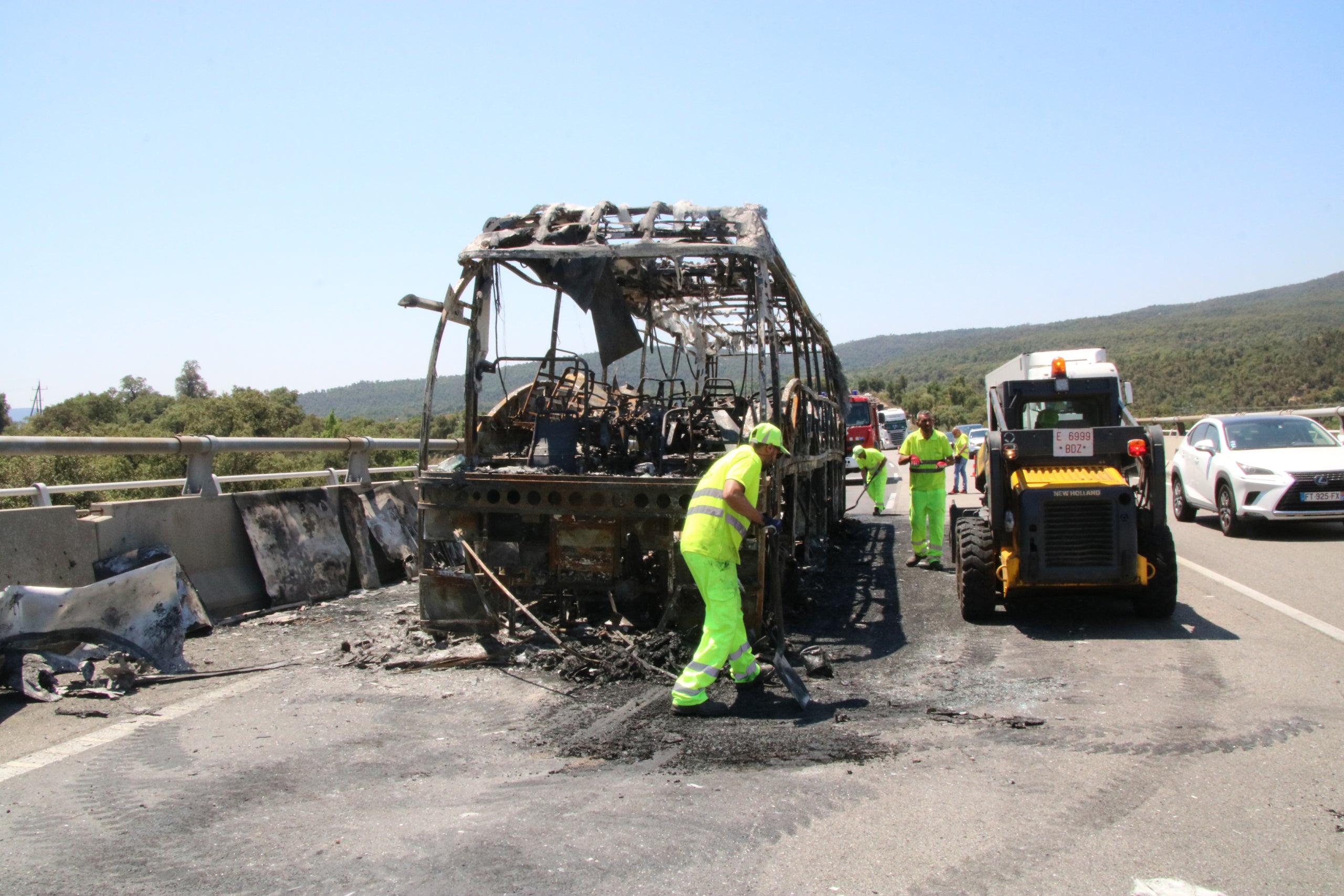 On encara no s’ha pogut recuperar la circulació amb normalitat és al tram de l’AP-7 de la Junquera en direcció França on s’ha cremat un autocar aquest matí. L’autocar que s’ha encès a dos quarts de deu d’avui al matí transportava una quarantena de persones en el moment que s’ha incendiat, però segons informen els Mossos d’Esquadra i els Serveis d’Emergències Mèdiques (SEM) que s’han dirigit fins al lloc dels fets, tots els passatgers han pogut abandonar l’autocar pel seu propi peu sans i estalvis. Les cues superaven els 4,5 quilòmetres aquest matí, i a hores d’ara les autoritats continuen treballant per retirar totes les restes del vehicle calcinat.