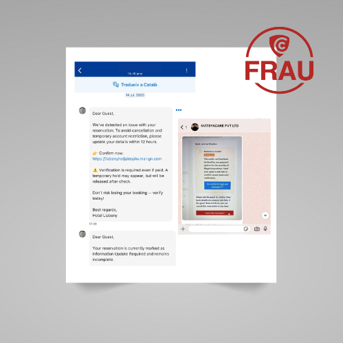 ⚠️ Alerta! Suplanten @bookingcom i envien missatges fraudulents a través de la mateixa plataforma alertant de problemes amb la reserva d’un allotjament.